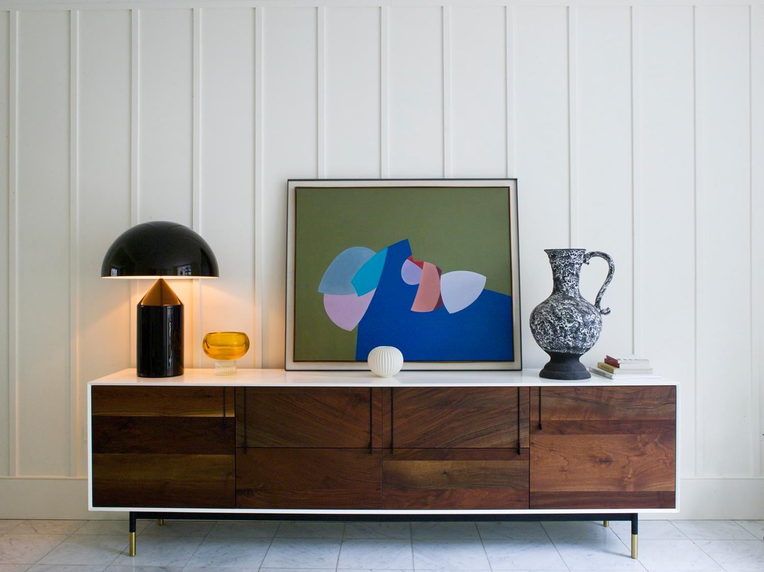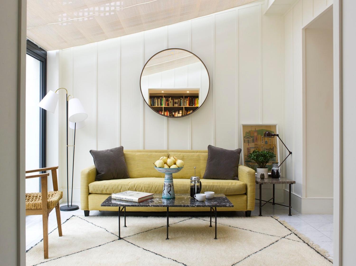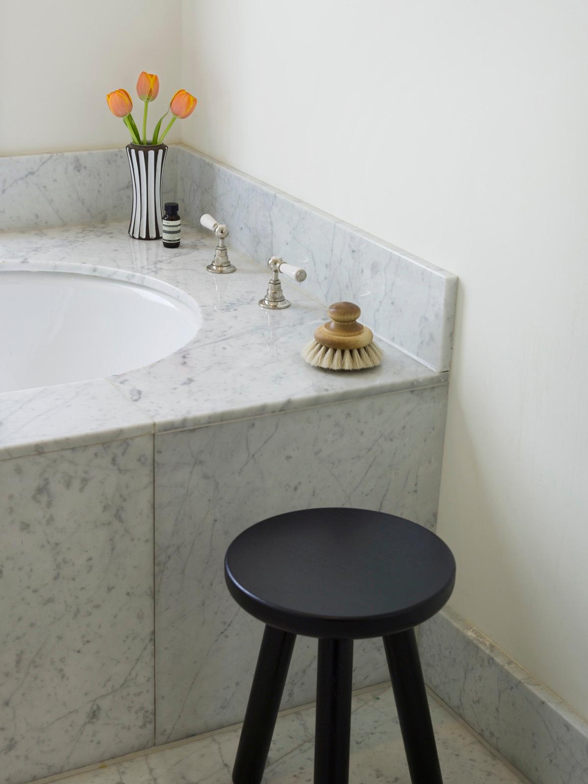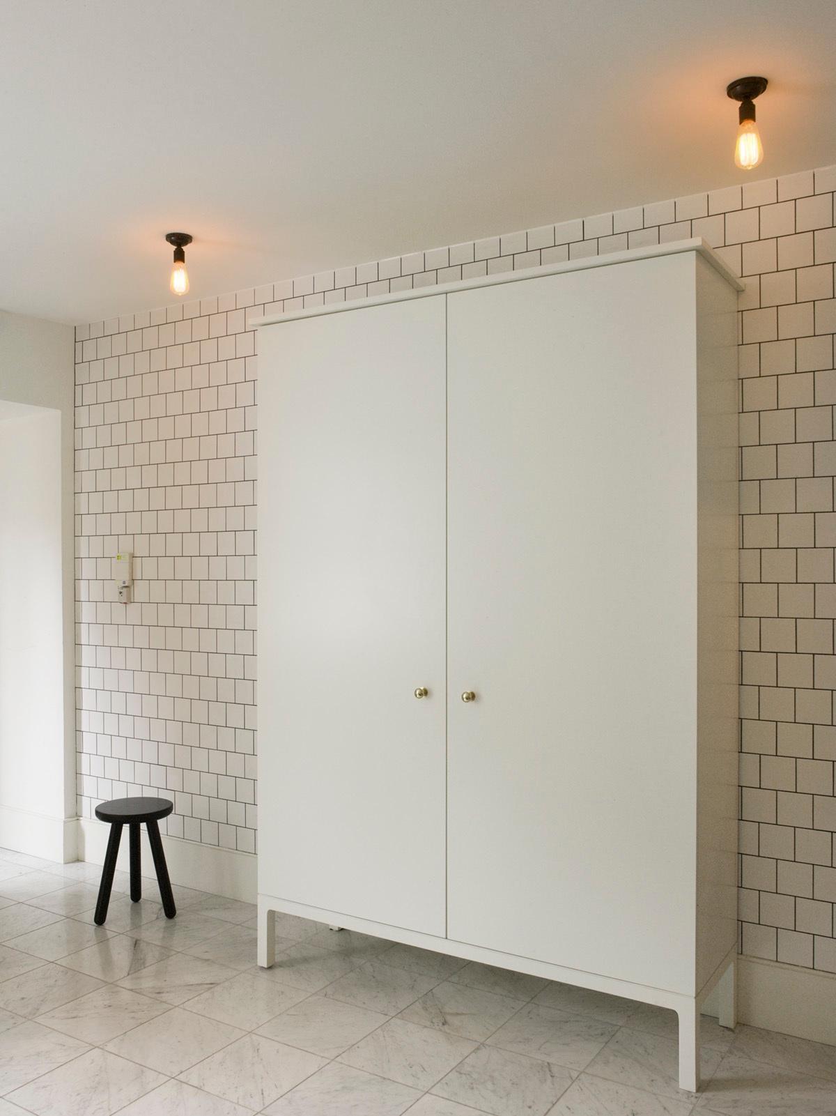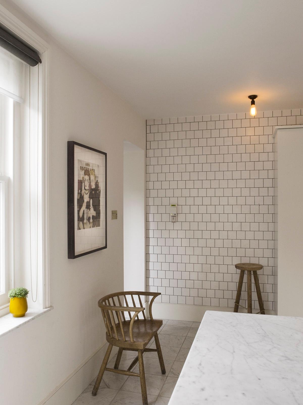 Designed as a week-day home in London, this two floor apartment project features a large kitchen at its centre, with adjoining open plan living and dining space and a study. The two bedrooms are located on the raised ground floor overlooking the front and rear gardens. The project required a gut renovation and architectural rethink to bring in light and a better flow of space. Studio Mellersh designed the bespoke kitchen and oversaw the project management and procurement of furnishings